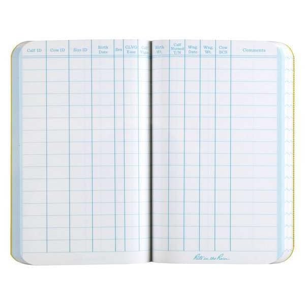 Rite in the Rain Weatherproof Beef Calving Record Notebook, 3" x 4.625", Yellow Cover (No. 1621)